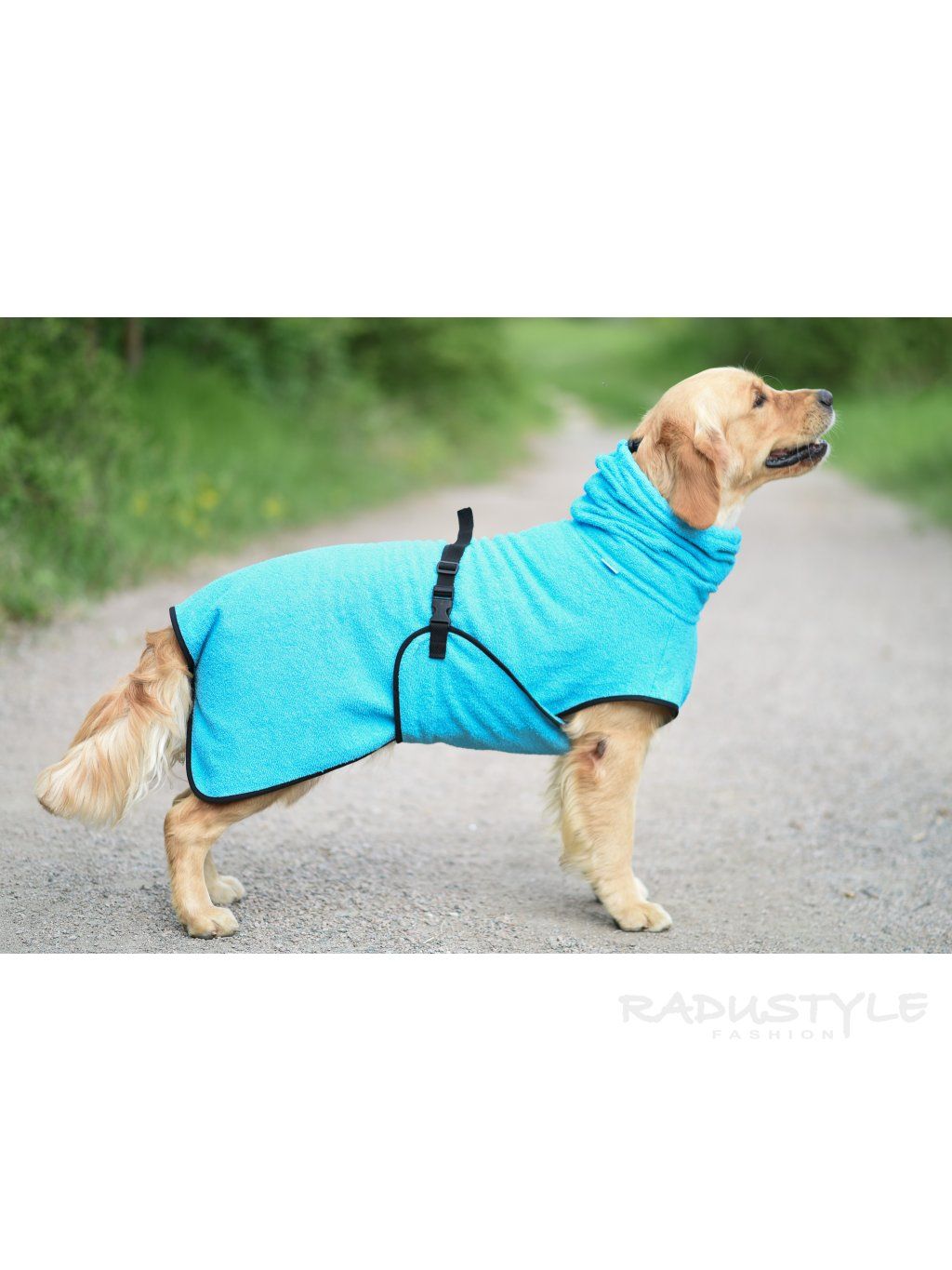 Vysoký límec s nastavitelnou stahovací šňůrkou pomáhá omezit oklepávání uší a zároveň kryje krk, hrudník i břicho jsou taktéž zakryté a břišní popruh s nastavitelným zapínáním na zádech zaručí, že župan pejskovi perfektně padne a zapínání pod ocasem ho udrží bezpečně na svém místě.
