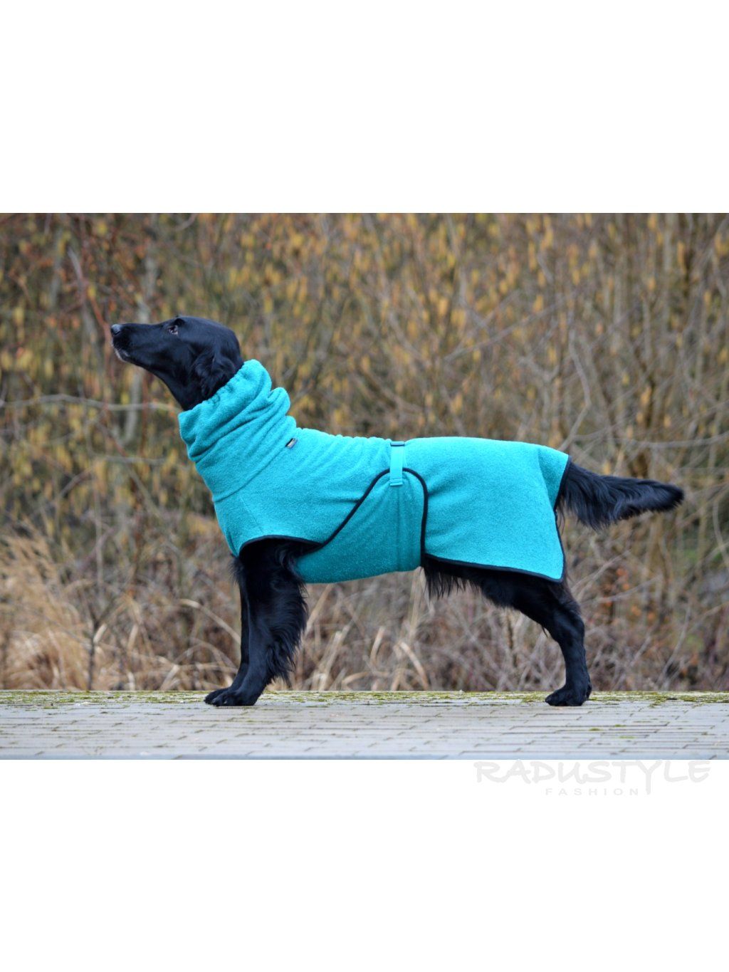 - zapínání pomocí knoflíku pod ocasem, aby se župan na těle psa nehýbal